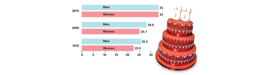 According to a survey by the National Population and Family Development Board (LPPKN), the average marriage age of marrying Malaysians will increase to 33 years by 2015 or they may choose not to get married at all. Furthermore, the average age at first marriage for men and women rose from 25.5 and 22.0 years respectively in 1970 to 28.6 and 25.1 years in 2000.