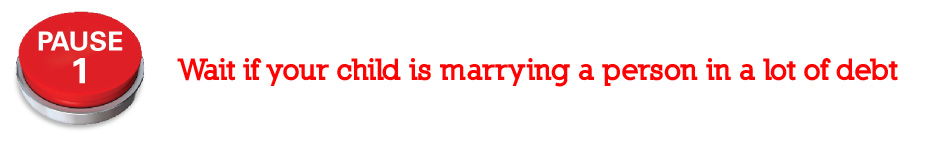 Starting a new life together can be stressful. More so, if your child has to face money woes. It may be a good idea to put the marriage on hold for a year or two until your child’s partner can clear the debt. Working through these financial issues may help them learn to be more financially responsible towards each other before they enter into married life.