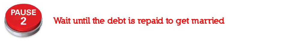 Information referenced from MyNextBuck.com, “How Getting Married Wrecked My Finances”, 8 January 2010 and MSNMoney, “Marrying Mr. Debt? Prepare to pay” 21 February 2011.