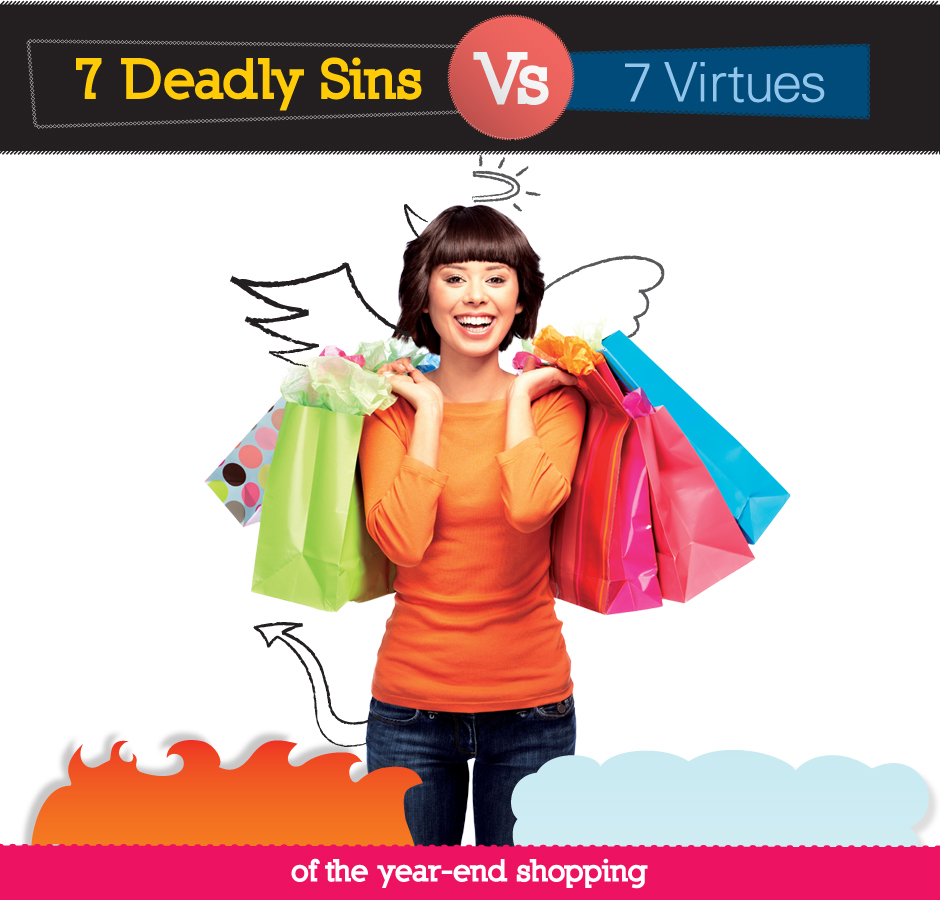 Spending more may be necessary at year-end, due to the school holidays, the celebrations and festivities around the corner. But are there ways to survive the year-end shopping without wreaking havoc on your finances? Our list of 7 deadly shopping sins and virtues may provide nuggets of wisdom to keep you on the straight path and guilt free shopping this year-end.